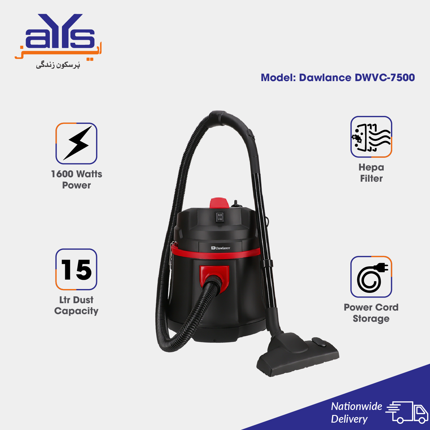 Dawlance DWVC-7500 Vacuum Cleaner (18L, Air Blower)
